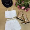 CONJUNTO COMPOSTO POR CROPPED, SHORT E CINTO