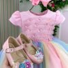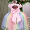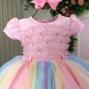Confeccionado em tecido misto possui forro em poliéster e algodão para não incomodar a criança e proporcionando um caimento incrível e sofisticado, possui gola redonda, comprimento médio, mangas curtas, possui elástico nas costas para melhor ajuste, acabamento com lindo laço na parte posterior do vestido completa o look dos sonhos!