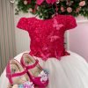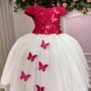 Um verdadeiro sonho em forma de vestido! Com design delicado e cheio de encanto, o Vestido Sabrina é perfeito para ocasiões especiais como aniversários, batizados, casamentos ou ensaios temáticos. O modelo possui corpete estruturado com bordados florais e aplicações de borboletas 3D com detalhes em strass e pérolas, que trazem movimento e sofisticação. A saia em camadas de tule com acabamento ondulado cria um caimento leve e volumoso, digno de uma princesa. O laço completa o visual com elegância e harmonia. Destaques do modelo: Aplicações de borboletas com strass e pérolas Bordados florais delicados no busto Saia rodada com camadas de tule Acabamento ondulado e leve Tecido Renda 100% poliester Tecido Tule 100% poliester Tecido Tecnosport 100% poliester Tecido Aplique Borboletas 100% Poliamida Perfeito para temas como Jardim Encantado, Borboletas, Formatura, Daminha e FloristaUm vestido que transforma cada momento em pura magia! Informações Importantes A renda do peito pode variar. As medidas podem variar em até 2cm. Recomendamos sempre consultar a tabela de medidas antes da compra para evitar erros. Para um volume extra, indicamos o uso de saiote de armação, vendido separadamente na categoria Acessórios. Tiara e outros acessórios não acompanham o produto, mas estão disponíveis em nosso site. Calçado vendido separadamente, disponível na categoria Calçados As cores do produto podem sofrer variações de tonalidade conforme a configuração da tela do seu dispositivo.