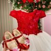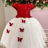 Confeccionado em tecido misto possui forro em poliéster e algodão para não incomodar a criança e proporcionando um caimento incrível e sofisticado, possui gola redonda, comprimento médio, mangas curtas, possui elástico nas costas para melhor ajuste, acabamento com lindo laço na parte posterior do vestido completa o look dos sonhos!