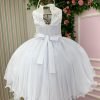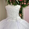 Confeccionado em tecido misto possui forro em poliéster e algodão para não incomodar a criança e proporcionando um caimento incrível e sofisticado, possui gola redonda, comprimento médio, mangas curtas, possui elástico nas costas para melhor ajuste, acabamento com lindo laço na parte posterior do vestido completa o look dos sonhos!