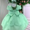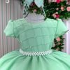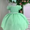 Confeccionado em tecido misto possui forro em poliéster e algodão para não incomodar a criança e proporcionando um caimento incrível e sofisticado, possui gola redonda, comprimento médio, mangas curtas, contém, também, elástico nas costas para melhor ajuste, acabamento com lindo laço na parte posterior do vestido completa o look dos sonhos!